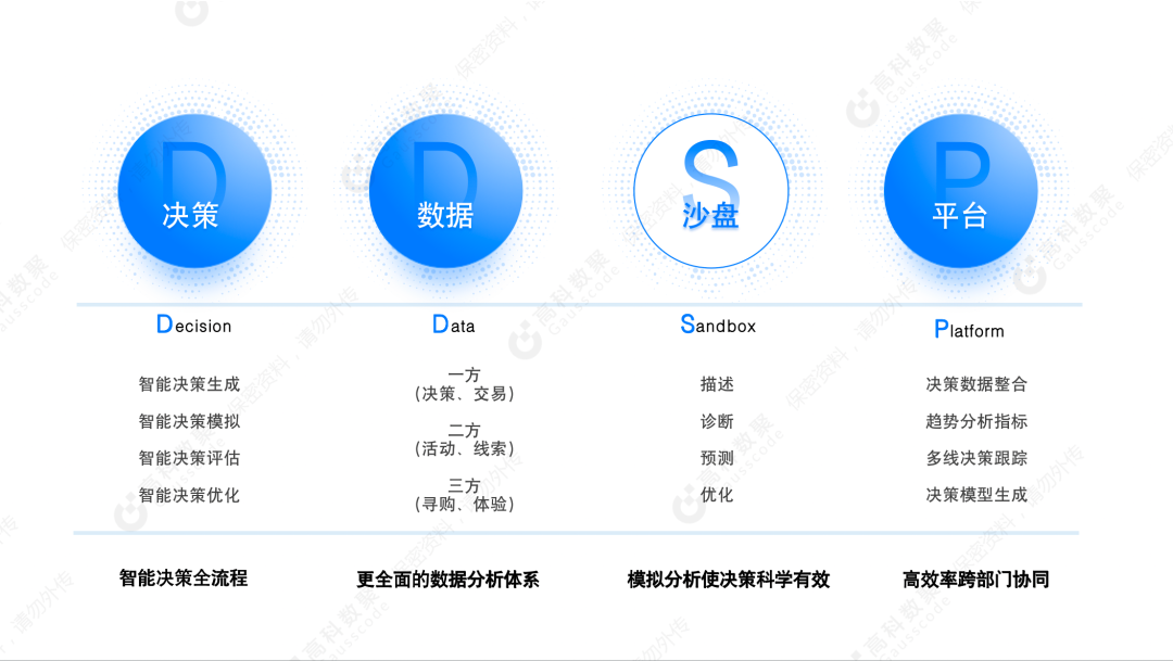 董琳介绍到,尊龙凯时z6com推出尊龙凯时z6com智慧决策平台DDSP(Decision Data Sandbox Platform),将从市场、销售、服务,以及智造研发等重要应用场景出发,从传统的经验主义决策方式向基于数据驱动的数智化决策全面升级。平台架设30+决策场景沙盘、三方多维数据指标、标签建设能力、百余预测决策模型能力,而且将持续在平台进行新增以及实现模型自我生长。